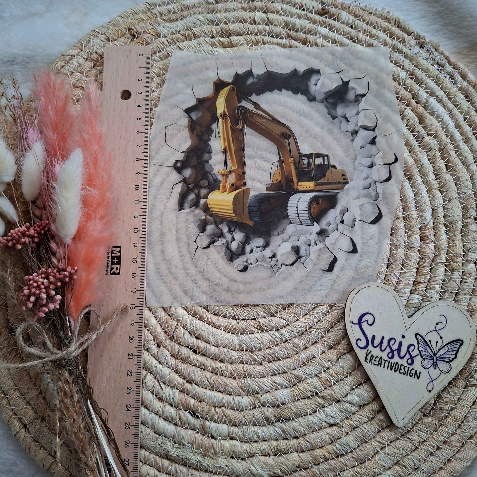 Bügelbild, Bagger, 3D, GlowInTheDark