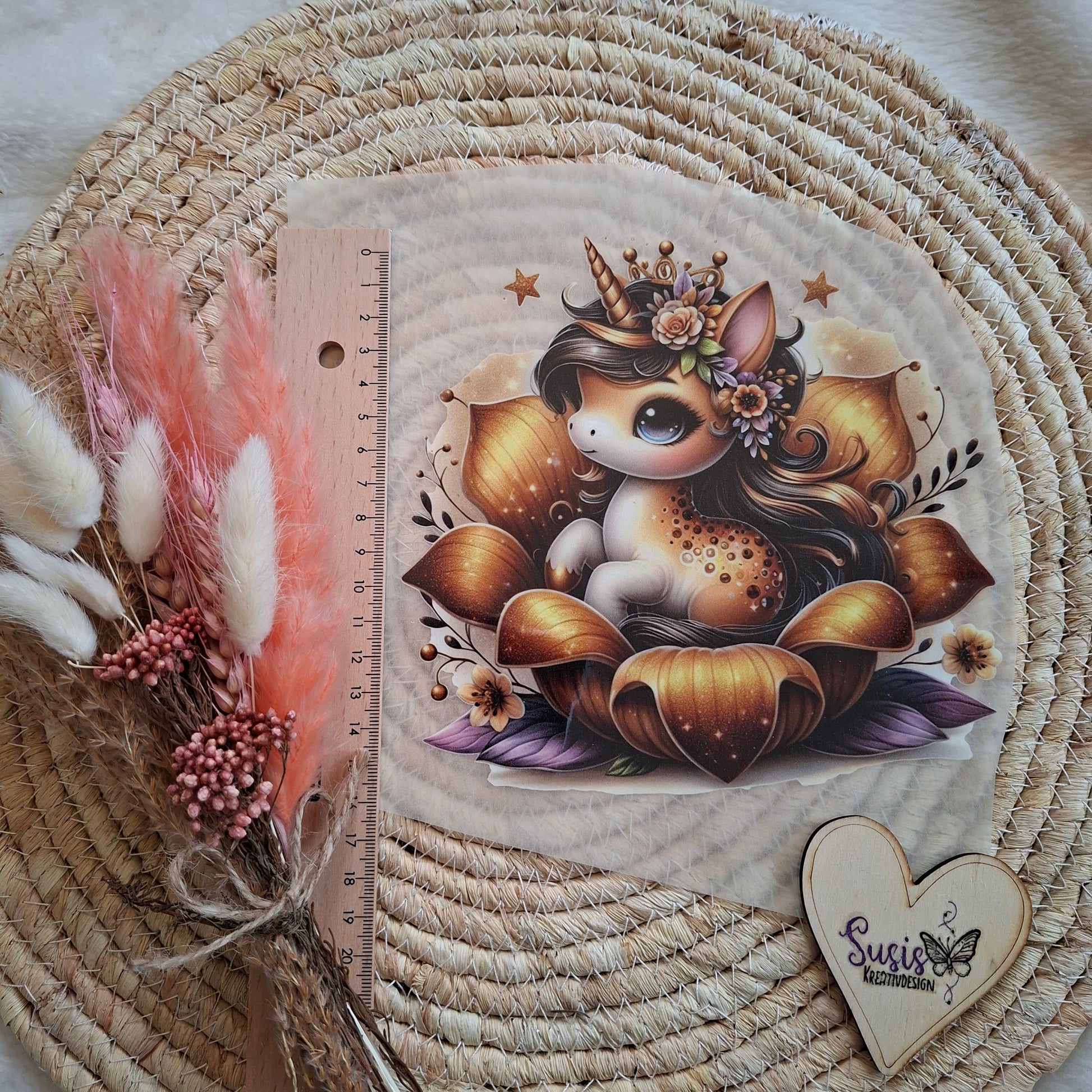 Bügelbild, Einhorn, Herbst, gold, GlowInTheDark
