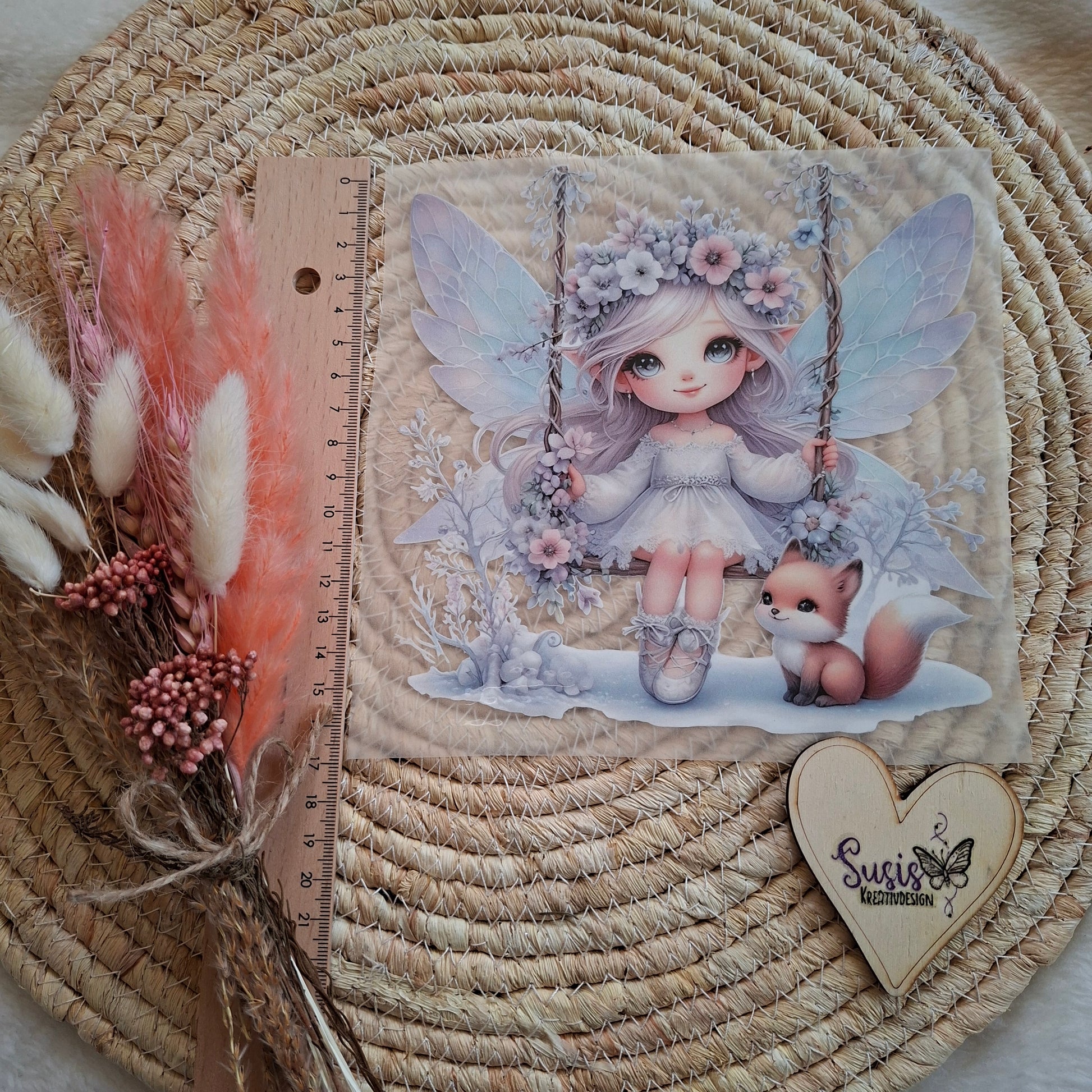 Bügelbild, Fee auf Schaukel, Fuchs, GlowInTheDark