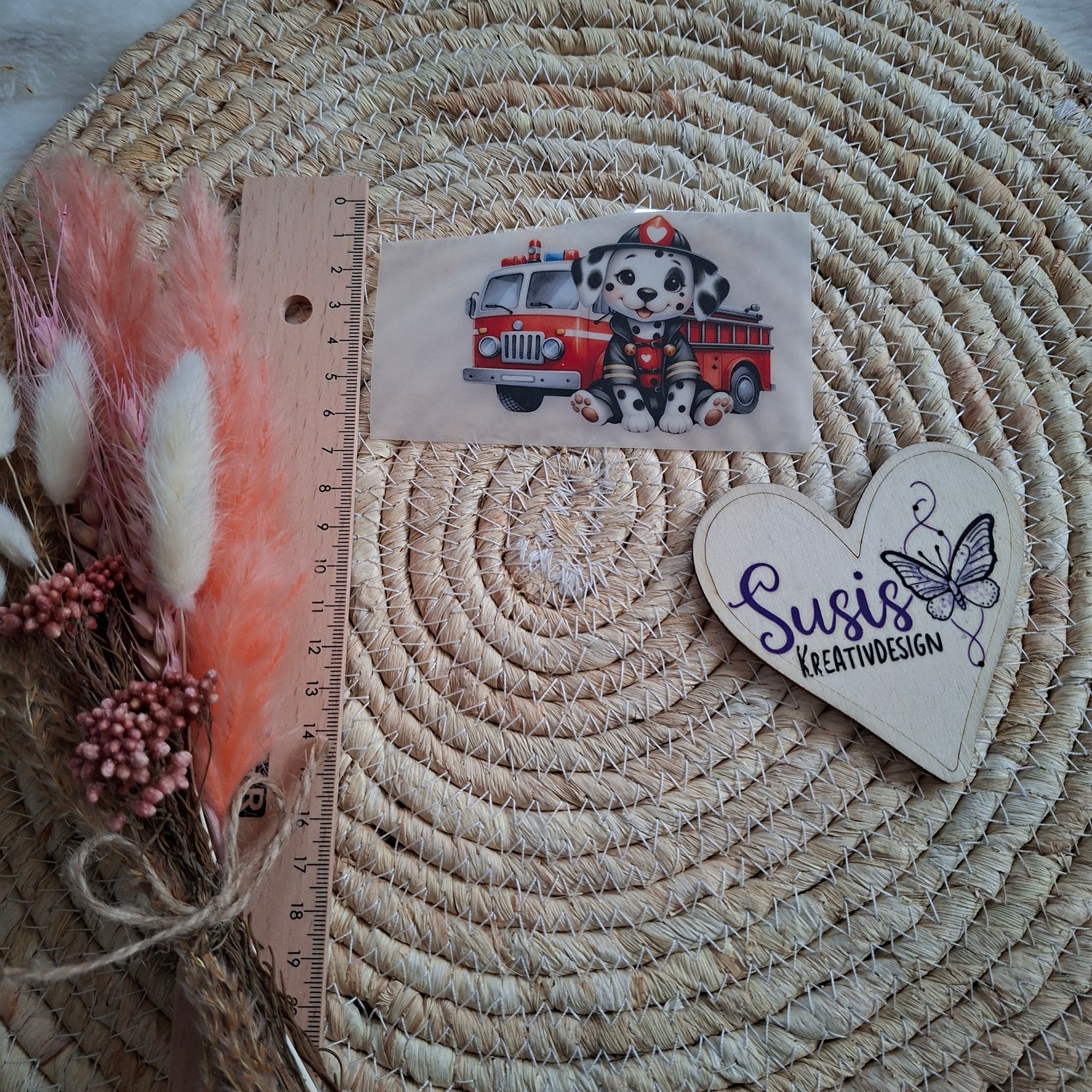 Bügelbild, Feuerwehr mit Hund, reflektierend