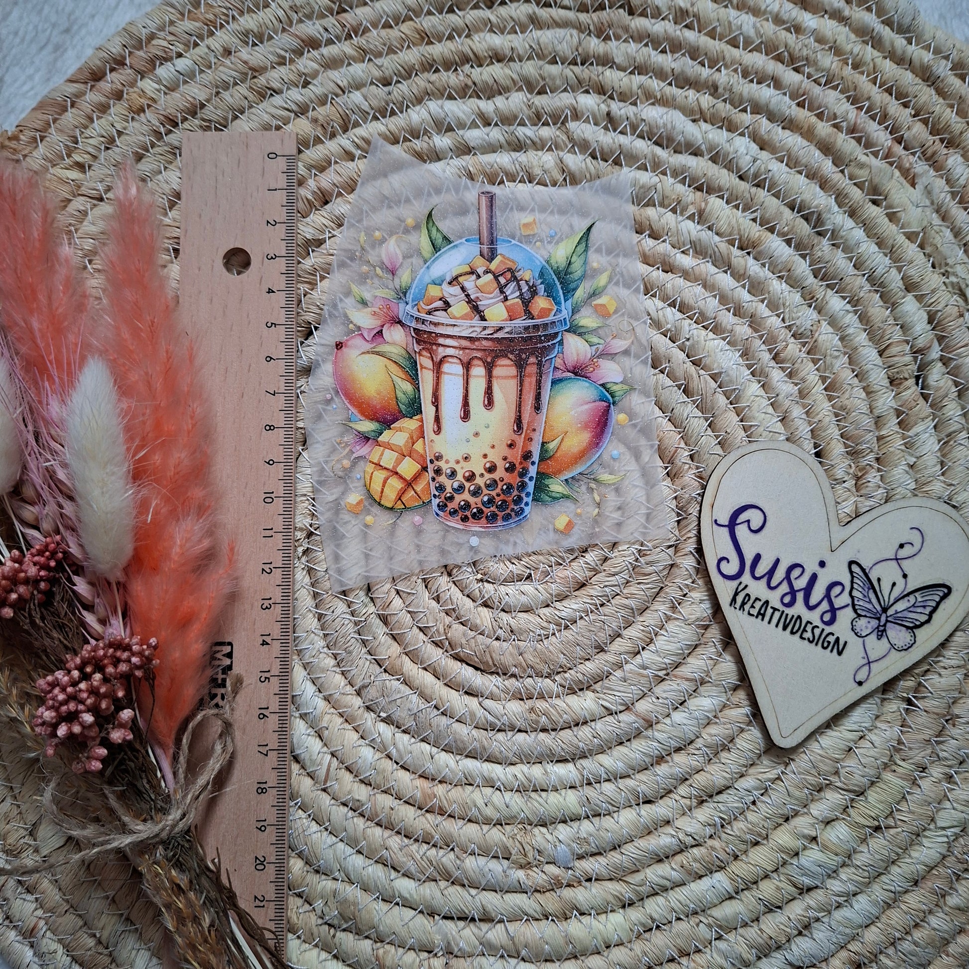 Bügelbild, Glitzer, Bubble Tea, Mango