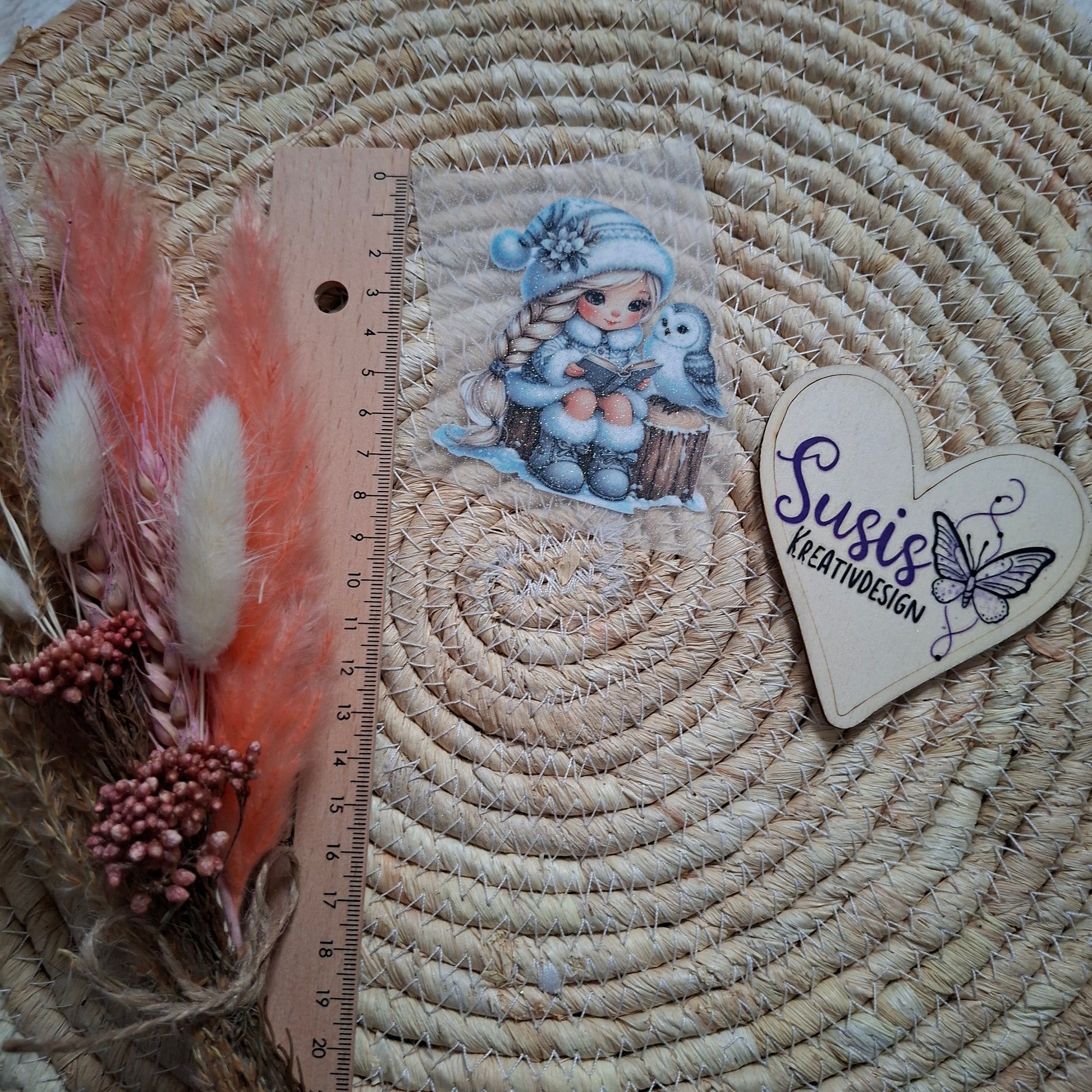 Bügelbild, Glitzer, Mädchen, Winter, Eule