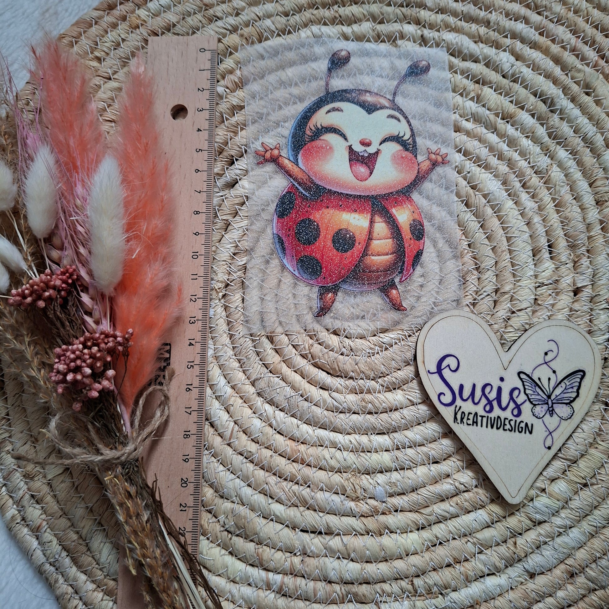 Bügelbild, Glitzer, Marienkäfer, fröhlich