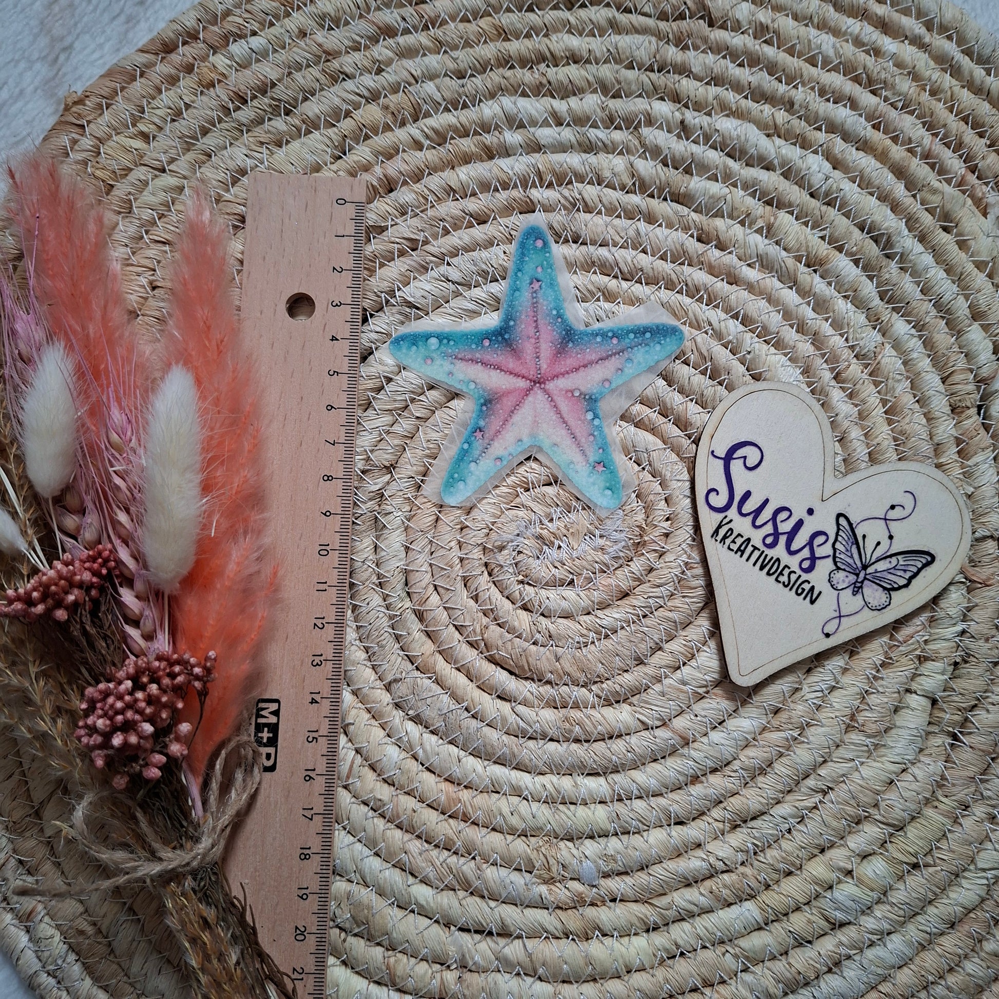 Bügelbild, Glitzer, Seestern, pastell