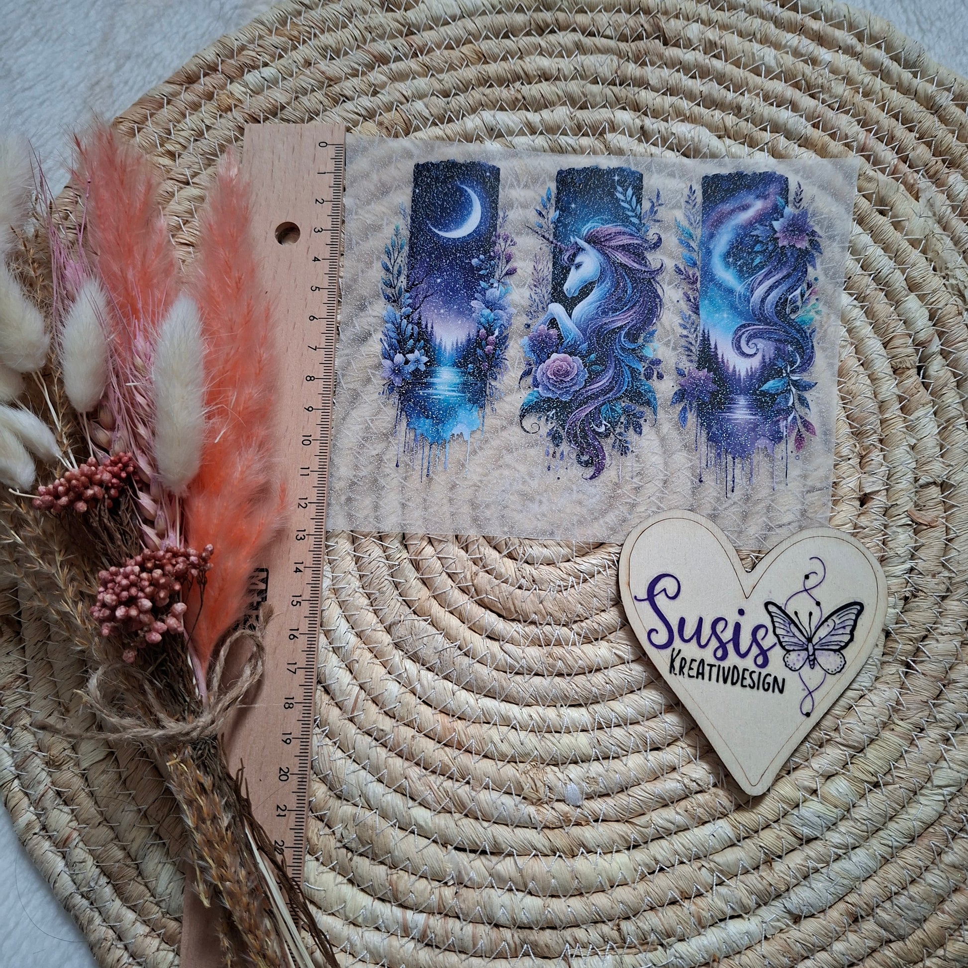 Bügelbild, Glitzer, Streifenbild, Einhörner, lila, Nacht