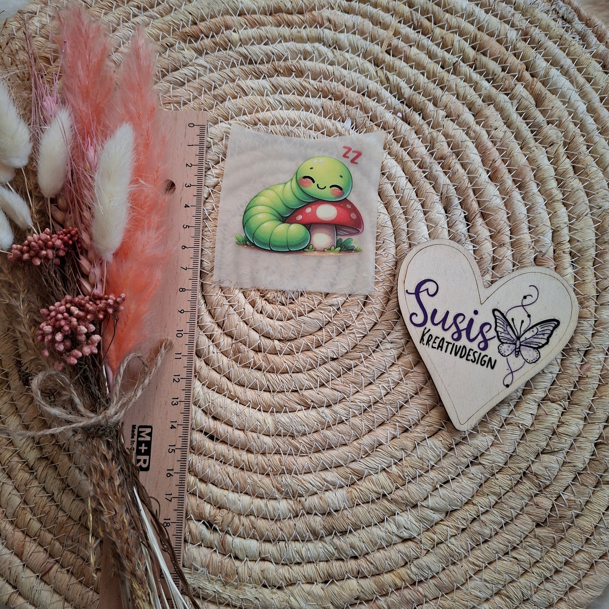 Bügelbild, Raupe, Pilz, GlowInTheDark
