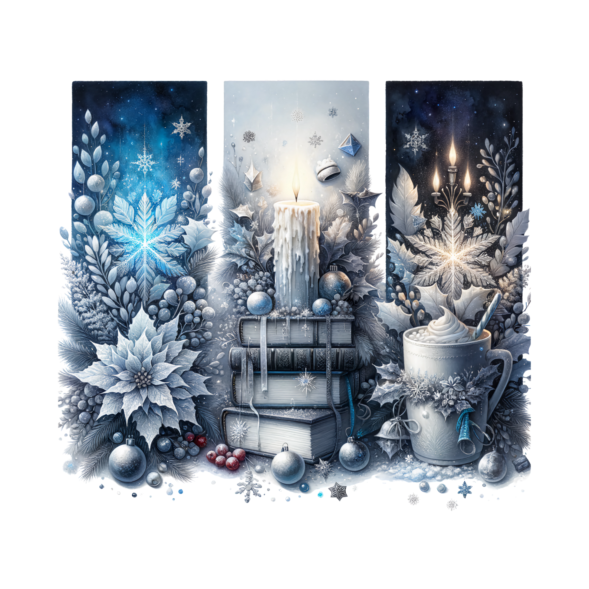 Bügelbild, Streifen, Winter, Schneeflocken, Weihnachtsstern, blaugrau, Kerzen