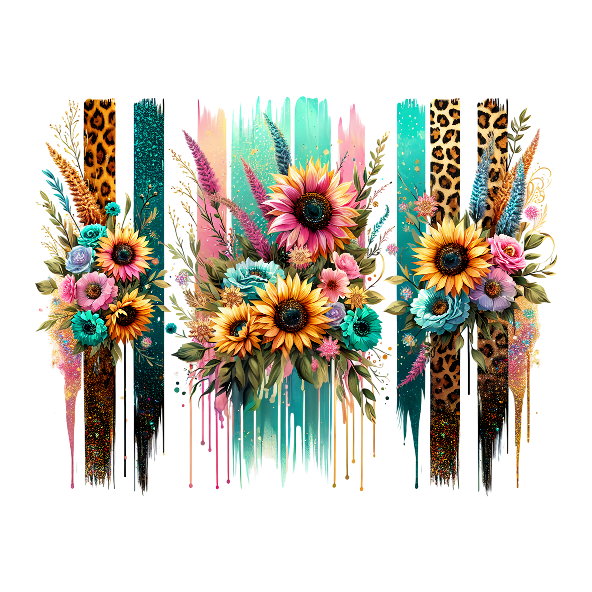 Bügelbild, Streifen, Herbstblumen, Sonnenblumen, bunt