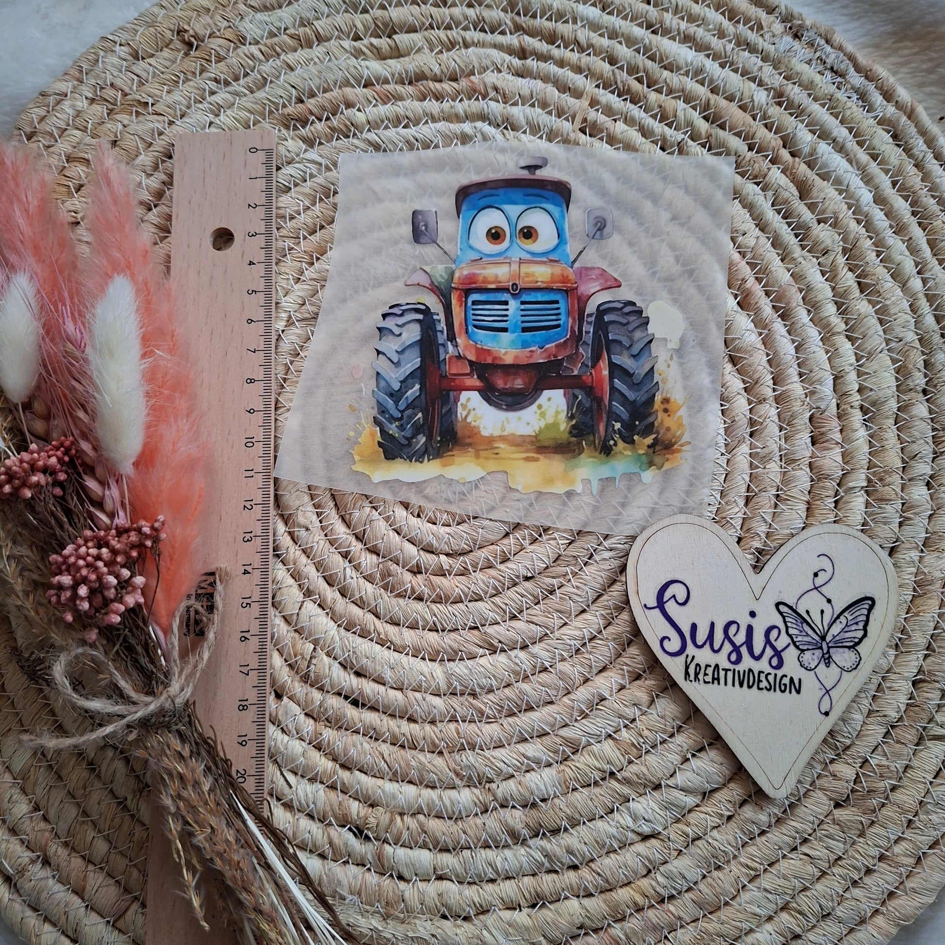 Bügelbild, Traktor mit Gesicht, GlowInTheDark