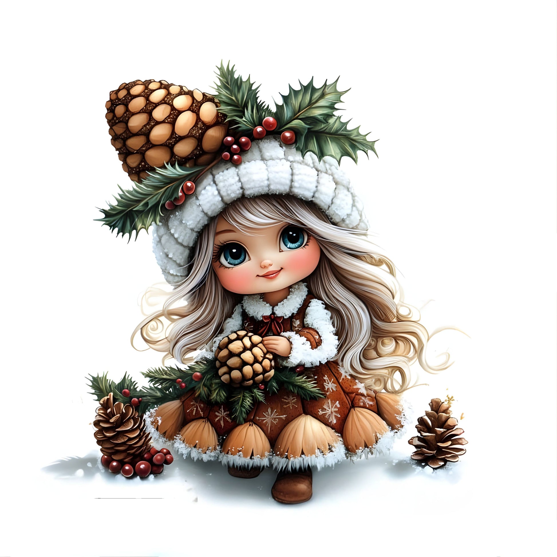 Winter Fee, Tannenzapfen, Tannengrün, braun #10