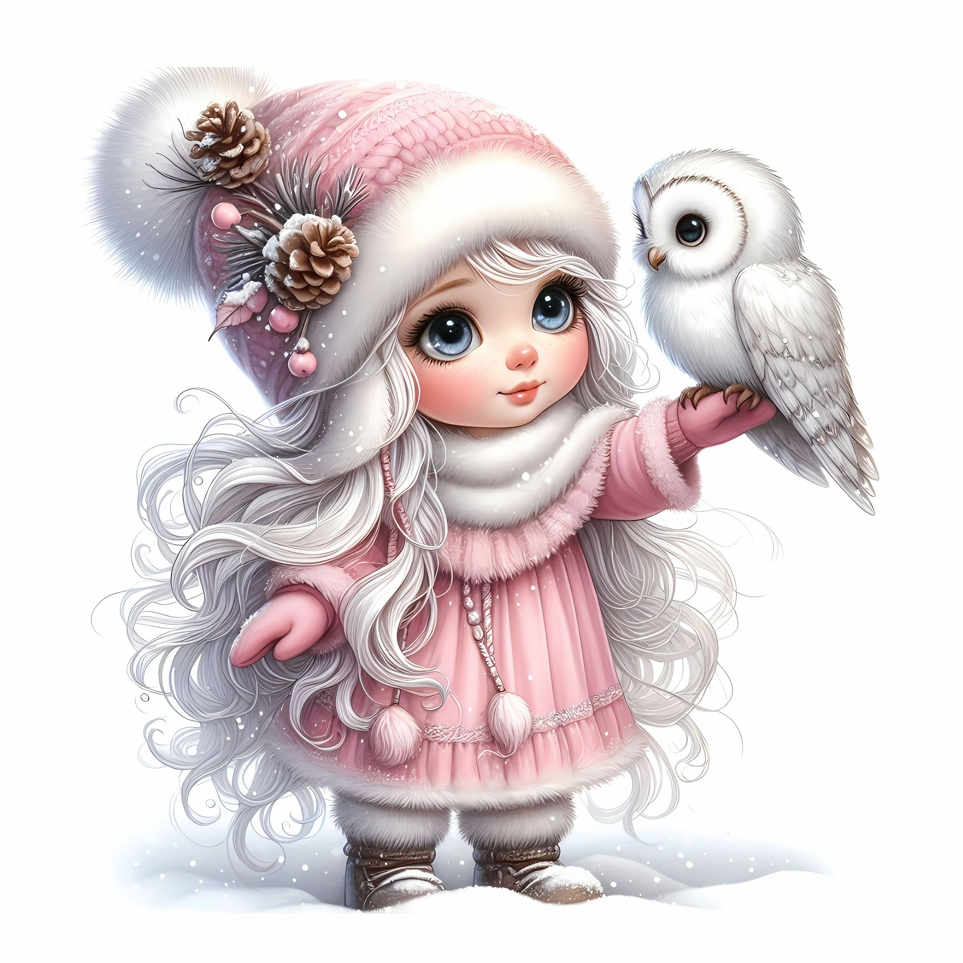 Winter Gnom, Winterwonderland, Eule, rosa #3