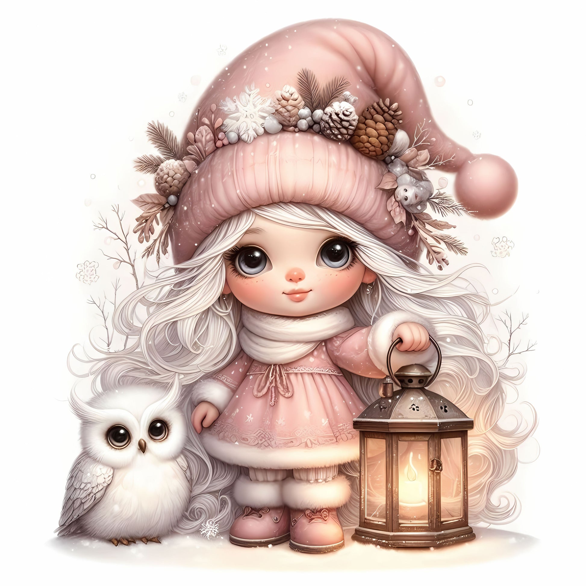 Winter Gnom, Winterwonderland, Eule, rosa #4